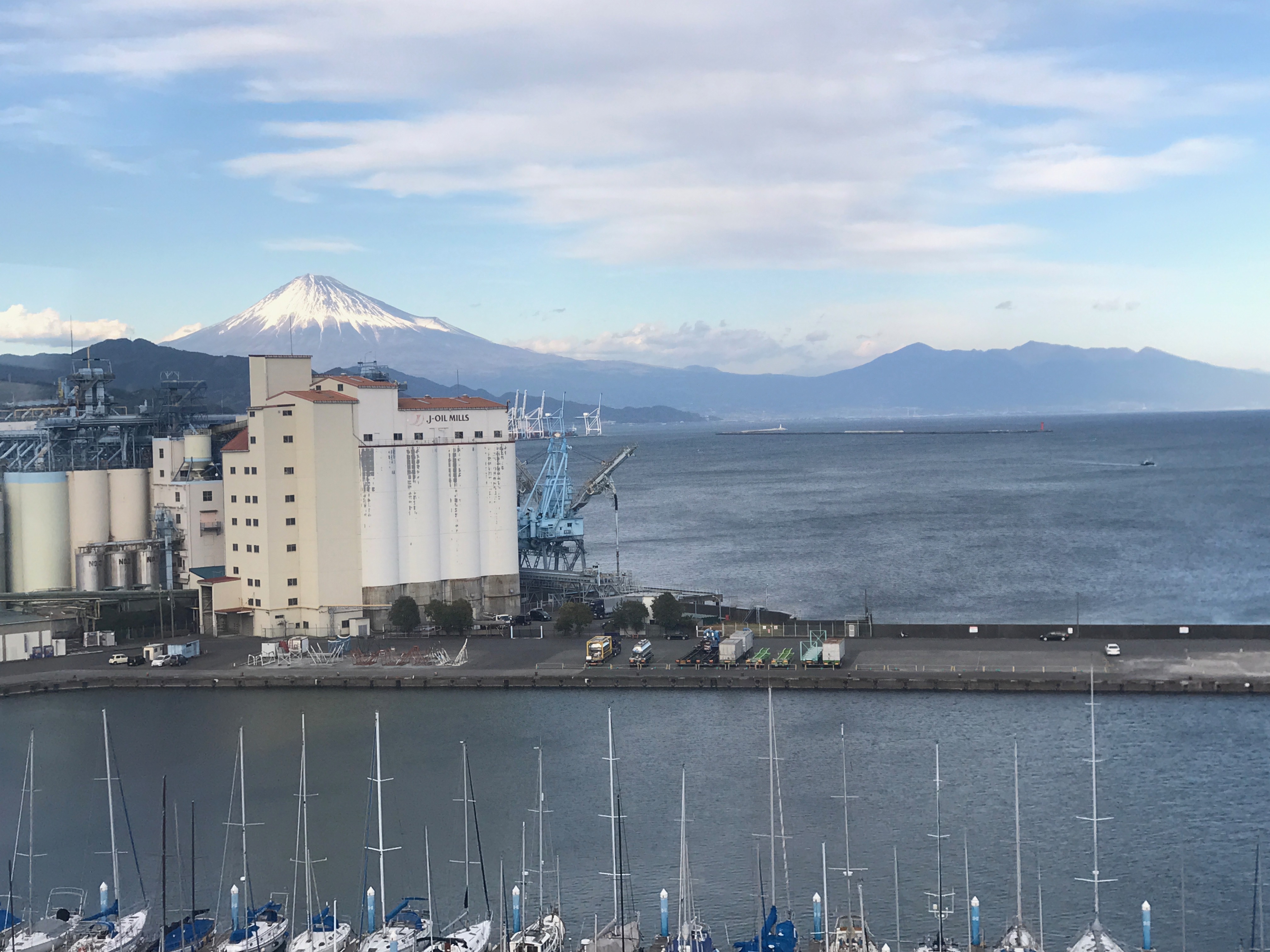 식품공장이 제법있고, 어선과 요트가 제법 보이던 바닷마을에 후지산이 그림처럼 보이는 곳